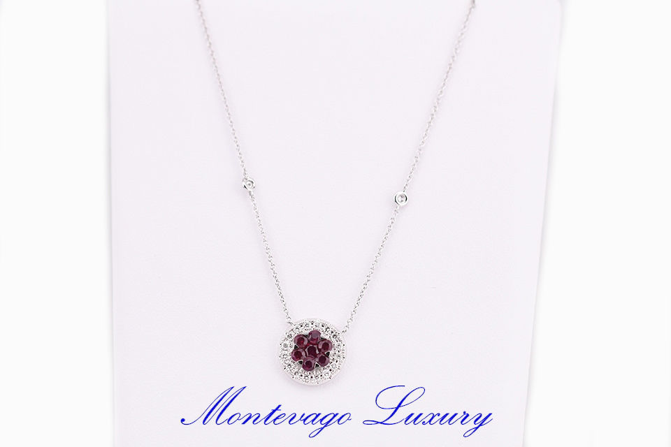 COLLANA CON PENDENTE CON RUBINI 0.77 CT E DIAMANTI