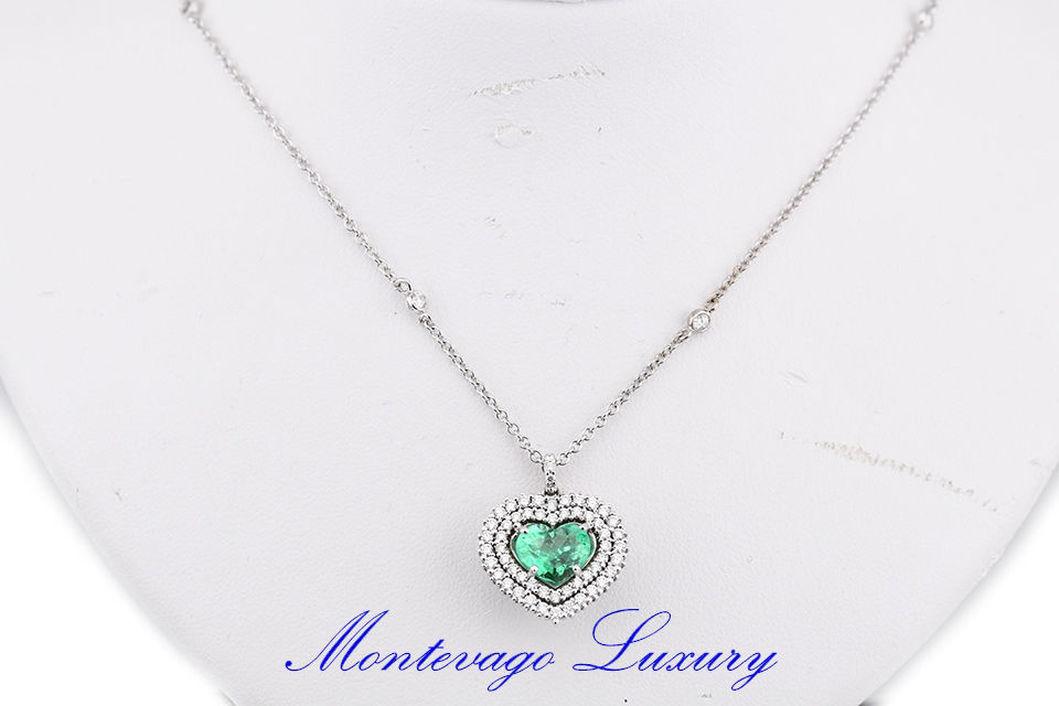 COLLANA CON PENDENTE CUORE DI SMERALDO E DIAMANTI