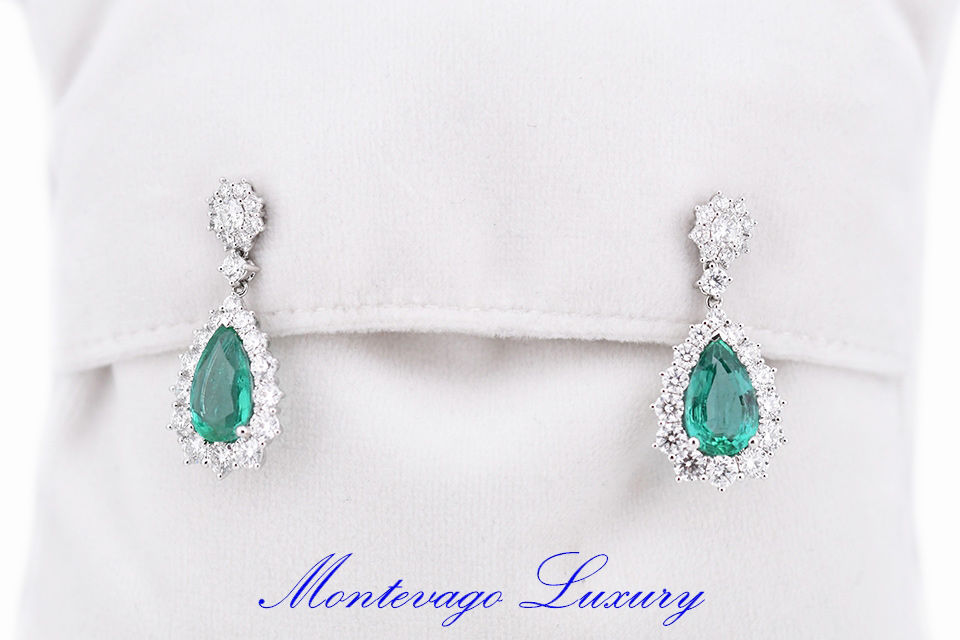 ORECCHINI PENDENTI A GOCCIA CON SMERALDI